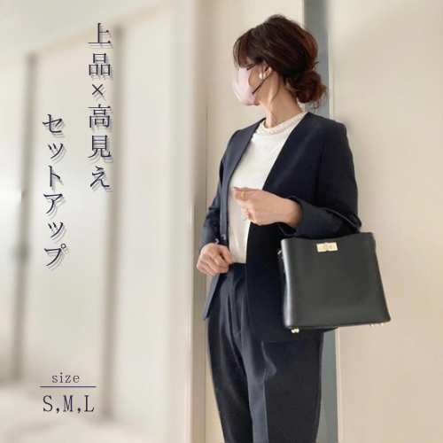 七五三のおしゃれママコーデにぴったりなアイテムおすすめとして、上品で動きやすく写真映えも叶うノーカラージャケットのセットアップをご紹介します。