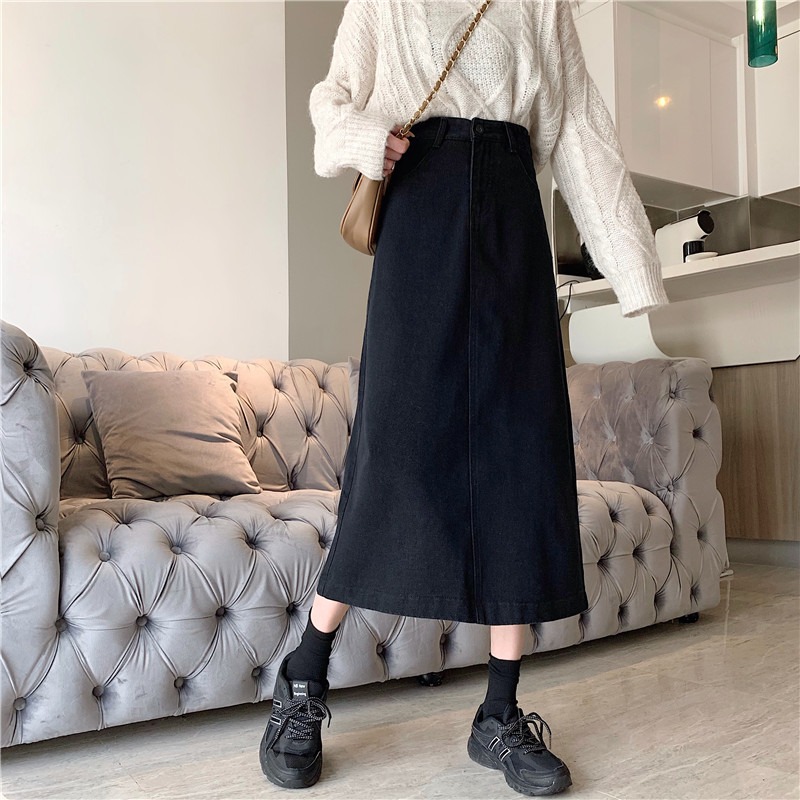 ママコーデのその他アイテムとして、ハイウエストでゆったりとしたシルエットが特徴的なデニムスカート。