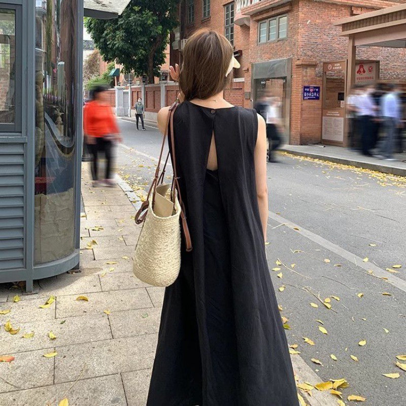 すっきりとしたノースリーブデザインで夏場のママコーデにぴったりなマキシ丈ワンピースです。
