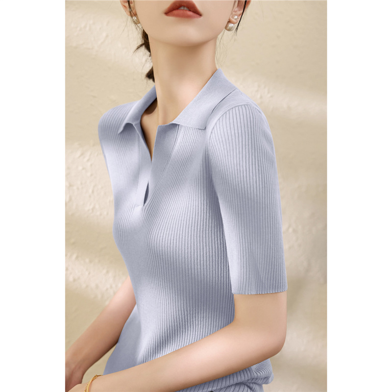 立ち襟デザインとシンプルな前開きボタンで、カジュアルながらも上品な印象に。