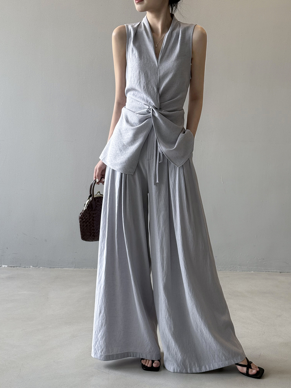 裾のスリットが動きやすさと抜け感のあるスタイリングを演出