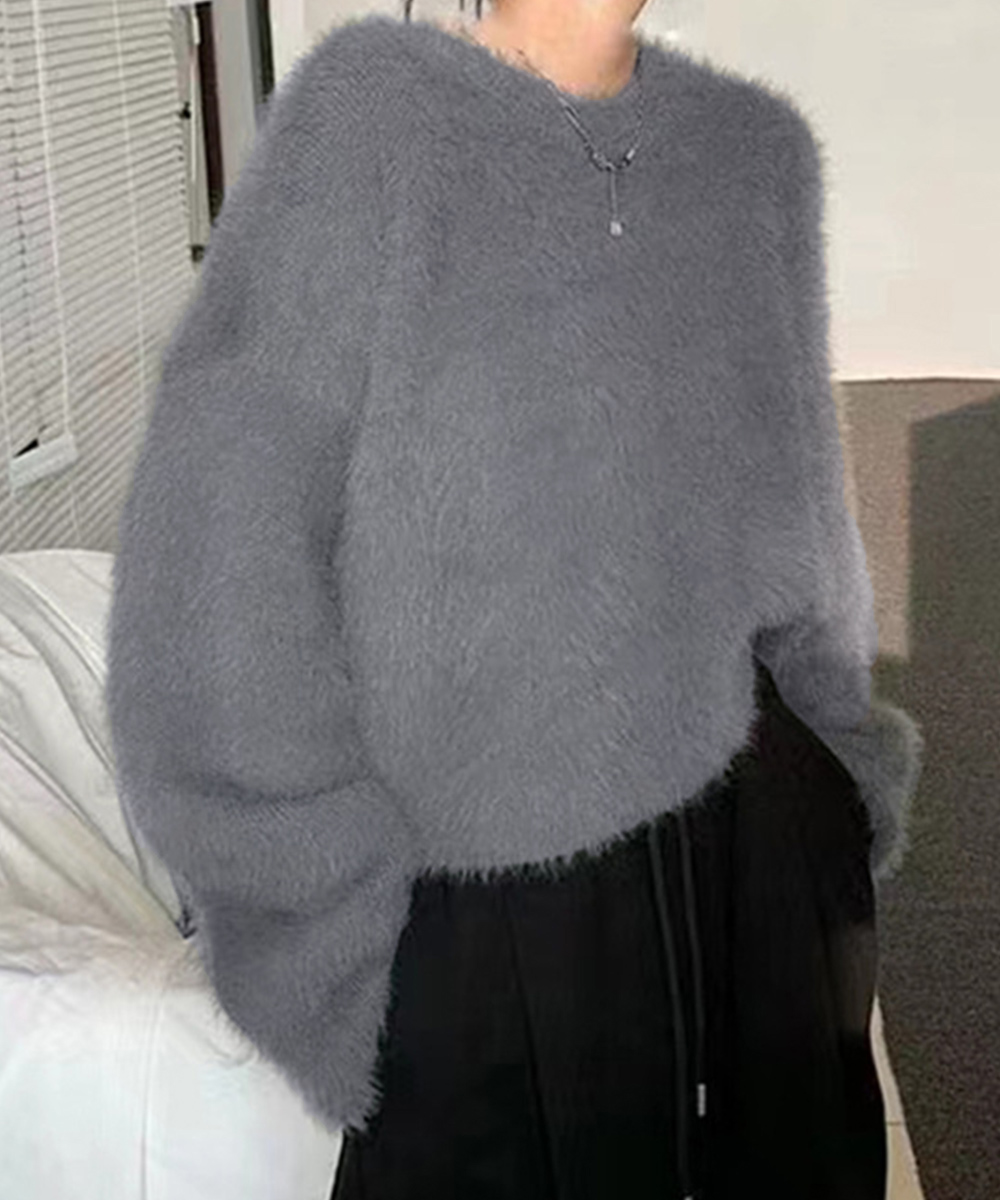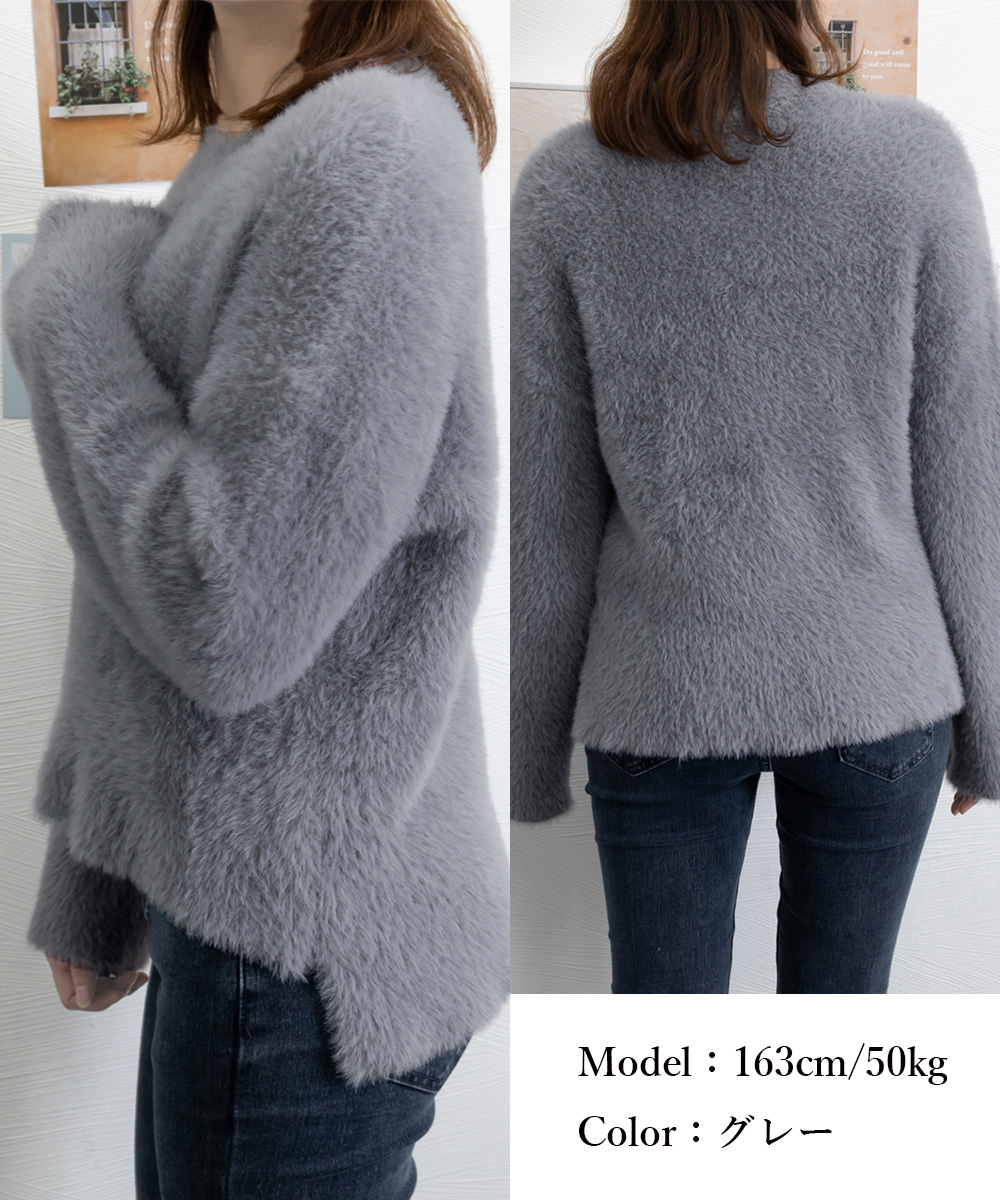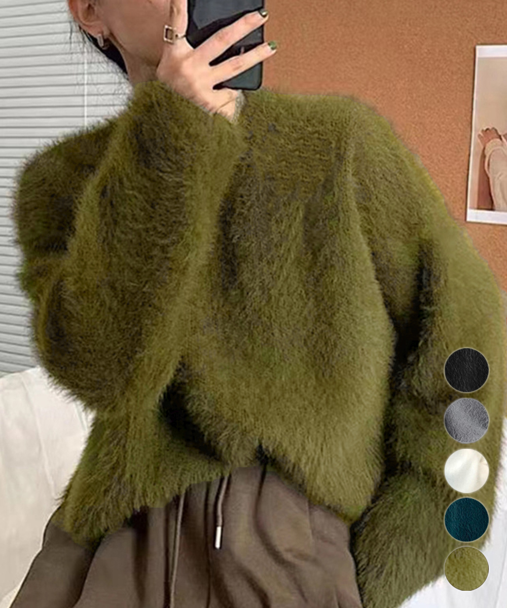 ふわふわとした極上の手触りが魅力的なシャギーニットトップス。
