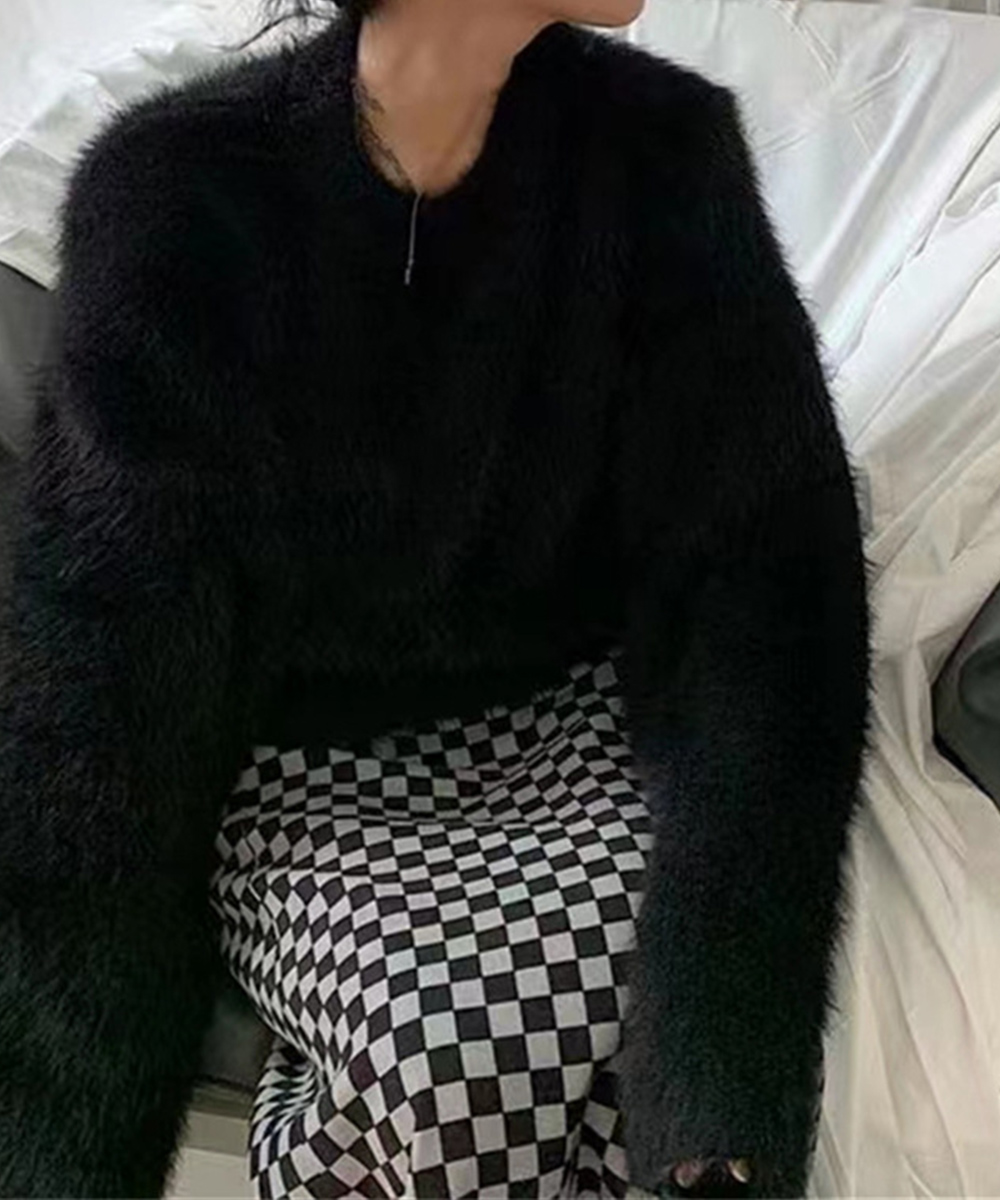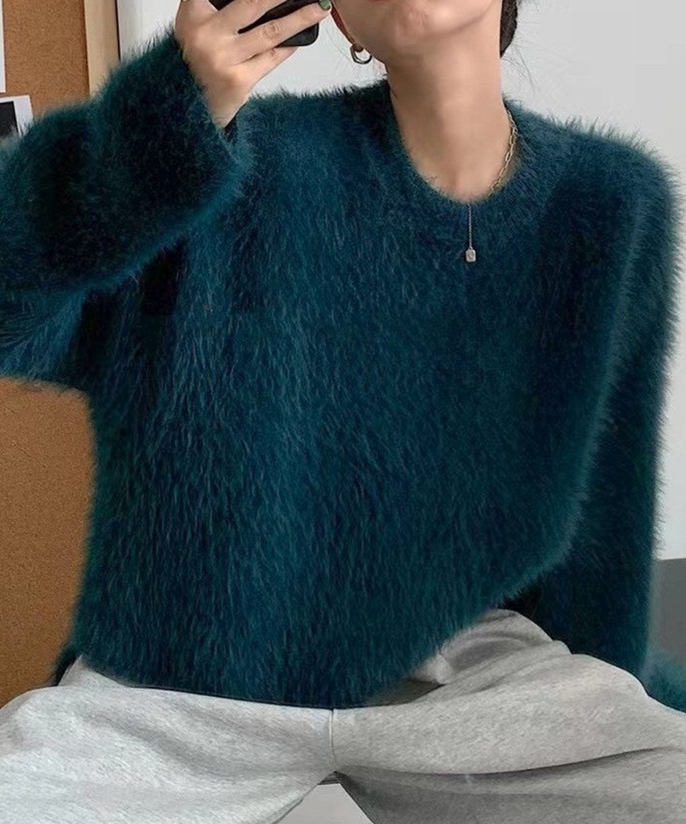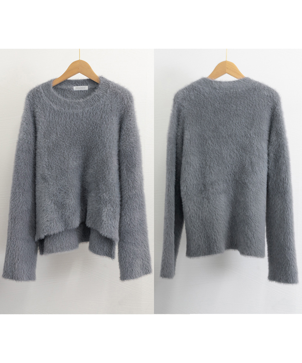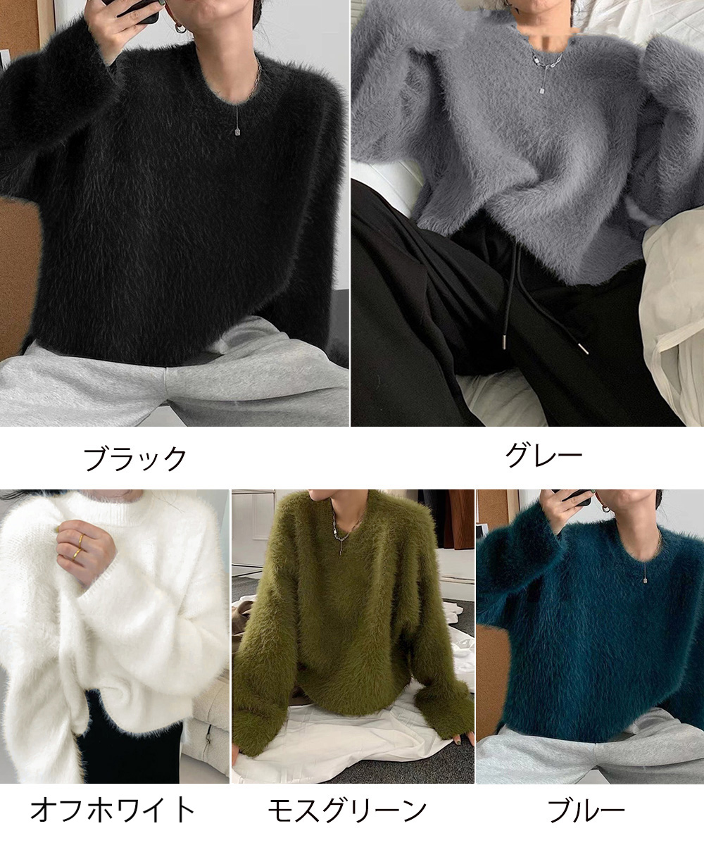 ふわふわとした極上の手触りが魅力的なシャギーニットトップス。