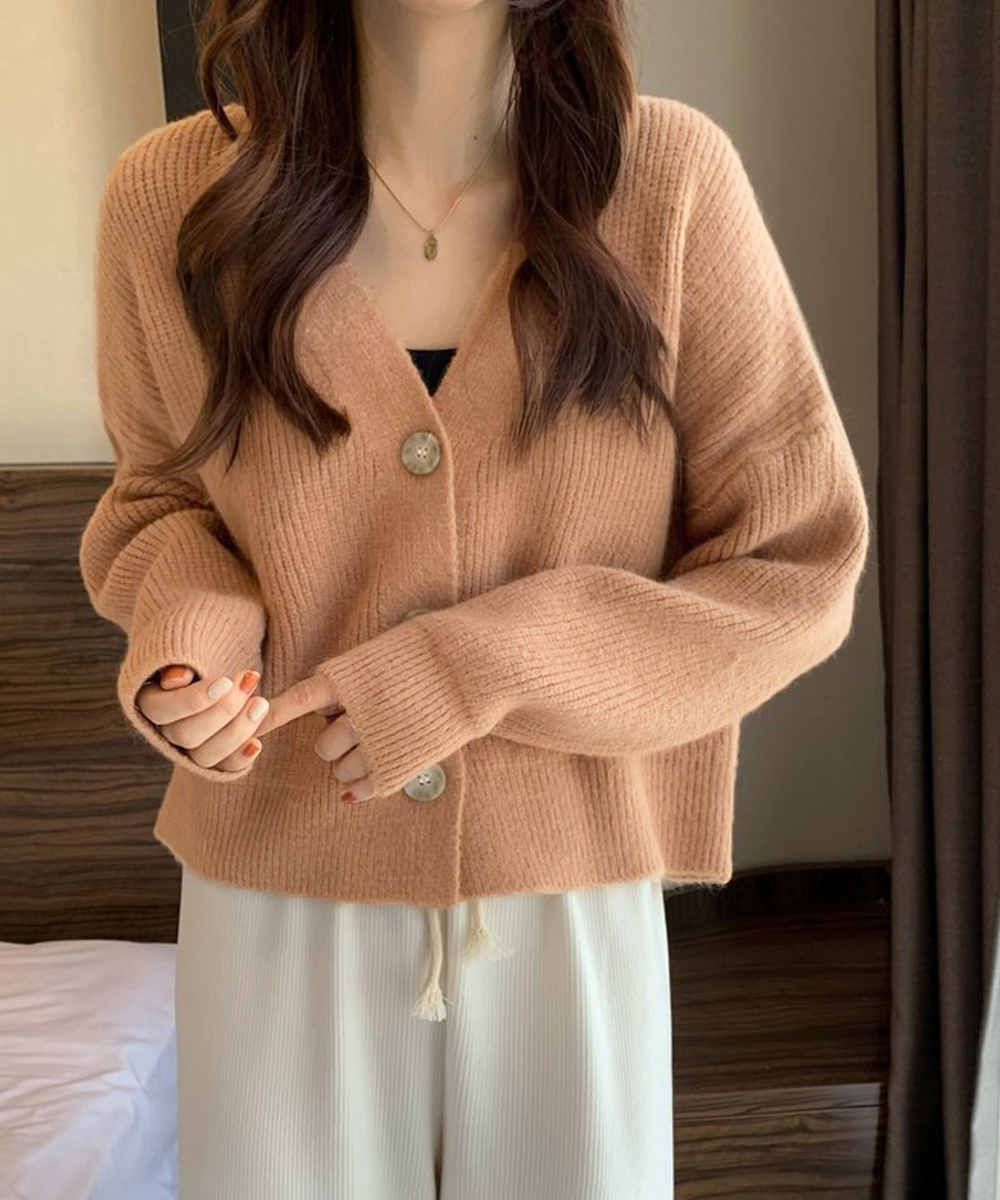 公園でのお散歩やママコーデにぴったりな、ゆったりシルエットの定番カーディガン。