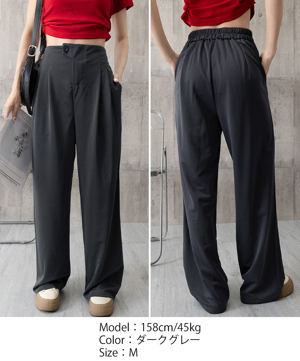 公園でのお散歩やママコーデにおすすめのハイウエストタック入りセミワイドパンツ。