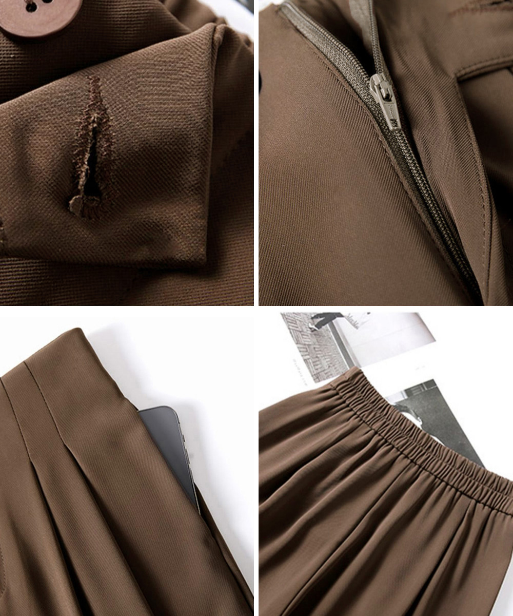 美しく入ったプリーツが上品で洗練された印象を演出し、女性らしい優雅さを引き立てます。